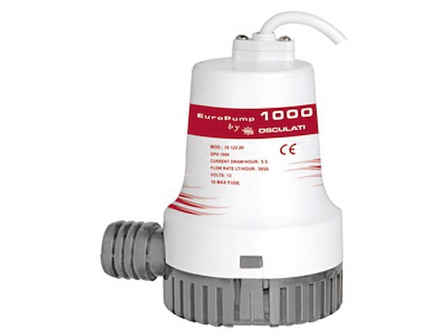 Portata 1000 Gph - 3800 Litri/Ora . Assorbimento 5 Amp/ora . Portagomma da 29 mm. Alimentazione 24 volt . Dimensioni : altezza 120 - Diametro 88 mm. .