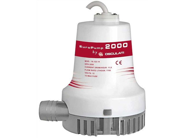 Portata 2000 Gph - 5850 Litri/Ora . Assorbimento 10 Amp/ora . Portagomma da 29 mm. Alimentazione 12 volt . Dimensioni : altezza 155 - Diametro 110 mm. .