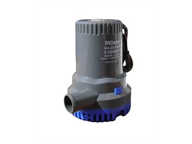 Pompa di sentina 1500 GPH - 95 Lt/min. . Diametro base 108 mm. Altezza 152 mm. Alimentazione 24 volt Assorbimento 4 Ah. Bocca uscita 29 mm. .