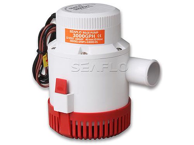 Pompe di sentina SeaFlo Vortex . Sommergibili in materiale resistente alla corrosione. 3500 Gph - 13900 Litri/Ora . Assorbimento 12 Amp/ora . Portagomma da 40 mm. Alimentazione 12 volt . Dimensioni : altezza 182 - Diametro 139 mm. .