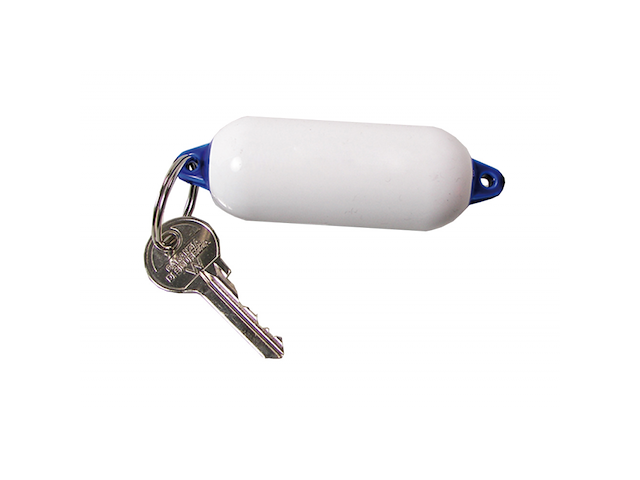 Portachiave in PVC morbido di forma cilindrica, con corpo di colore bianco e calotta blu, dim. Ø mm. 31 x 98. Confezione 10 pz.