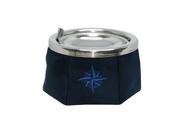 La parte interna ed il tappo sono di acciao inossidabile. La parte esterna invece è di polipiel con serigrafia decorativa. Il tappo antivento è asportabile per permettere la pulizia della vaschetta di raccolta dellacenere. Alla base è dotato di un peso che permette al posacenere una maggiore stabilità. Dim. Ø cm 11,5 X 9H
