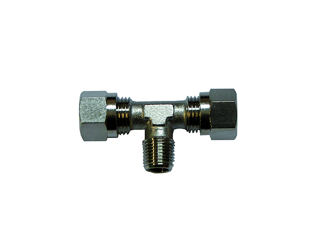 Raccordo in ottone nichelato a Tee 1/4 gas per art. 4344518/519 o tubo rame Ø mm. 10