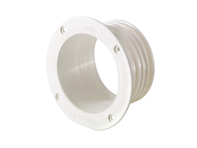 Raccordo drittofissaggio con 4 viti. Può essere abbinato a prese d’aria rotonde o quadrate.