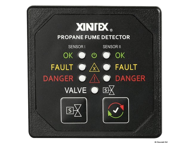 Completo di 2 sensori da posizionare ove conveniente e di una valvola solenoide. In caso di fuga di gas attiva un segnale luminoso a LED + allarme sonoro 68 dB e chiude il gas tramite la valvola solenoide.