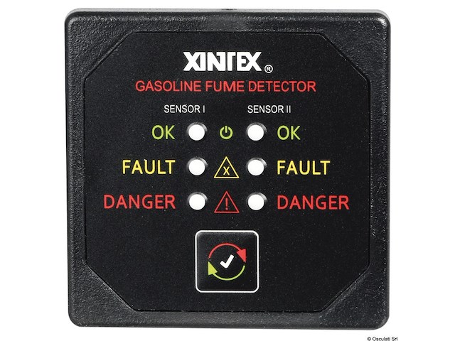 Completo di 2 sensori da posizionare in sentina. Allarme sonoro da 68 dBA + ottico con LED rosso.Pulsante di controllo TEST-SILENCE. Fornito con due cavi da 6 m.