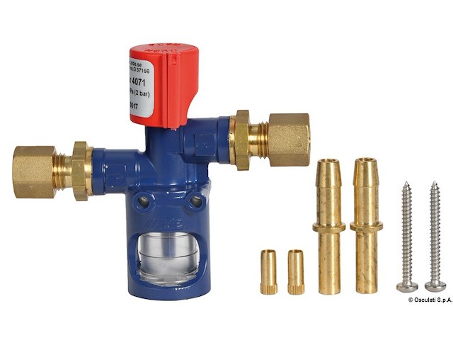 Questo dispositivo si installa vicino alla bombola del gas, dopo il regolatore di pressione, e serve ad individuare eventuali fughe di gas a valle della bombola di butano.