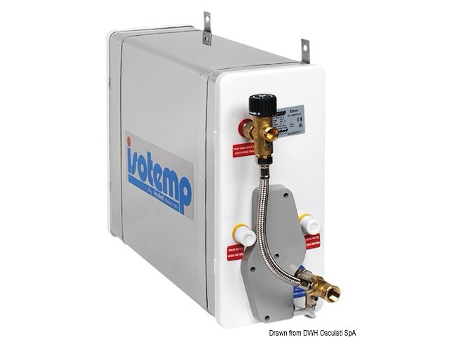Serbatoio interno, serpentina e involucro esterno in acciaio inox. Il serbatoio é garantito 5 anni contro le perdite. Funzionano con una resistenza in rame nichelato da 750 W a 220 V, oppure con scambiatore di calore collegato all’impianto di raffreddamento del motore. La resistenza é posizionata nella parte bassa dello scaldabagno per evitare la stratificazione del calore. Doppio termostato (di sevizio e sicurezza). Valvola di sicurezza a 7 bar. Isolamento in p