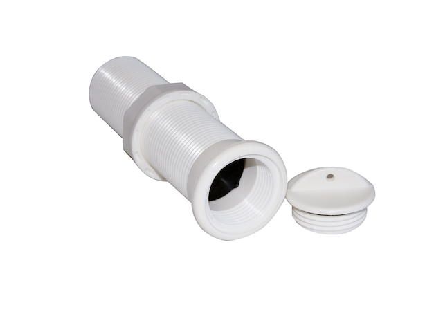 Scarico a marein nylon bianco interamente filettato convalvola di non ritorno. Dado e tappo a vite.