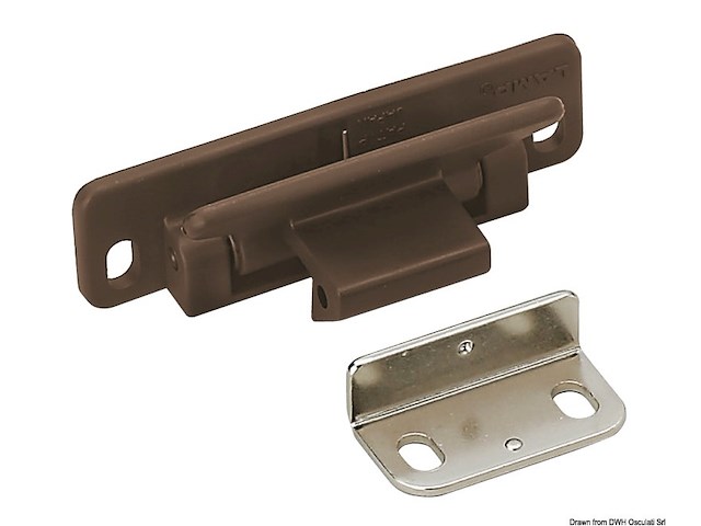 In poliammide (PA). Per antine senza pomoli o maniglie.La posizione di installazione può essere regolata ± 1,5 mm orizzontale e verticale.
