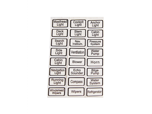 Serie di simboli adesivi colore bianco per interruttori in rilievo 24 utenze,dim. mm. 22 x 11