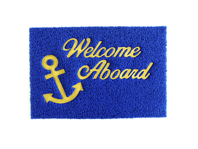 In morbido e resistente PVC antiscivolo, antiolio, benzina, acqua di mare e raggi U.V. Lo strato superiore è costruito per intrappolare lo sporco e la polvere. Per la pulizia utilizzare un aspirapolvere, sbattere o lavare con detergenti non aggressivi. Colore Blu. Dim. mm 900x600