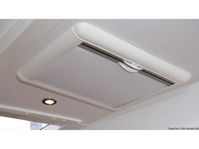 Sistema di base per boccaporti rettangolari e rotondi, installato sulla superficie del rivestimento interno della cabina.Tenda oscurante al 100% + zanzariera inserite in unica cassetta in plastica dal design compatto con bordi arrotondati.- Optional da ordinare separatamente: controtelaio di finitura flessibile 19.809.05/20Su richiesta, disponibili in varie misure di serie o produzione su misura per adattarsi a qualsiasi boccaporto. Colore struttura: bianco sporco (RAL9010),
