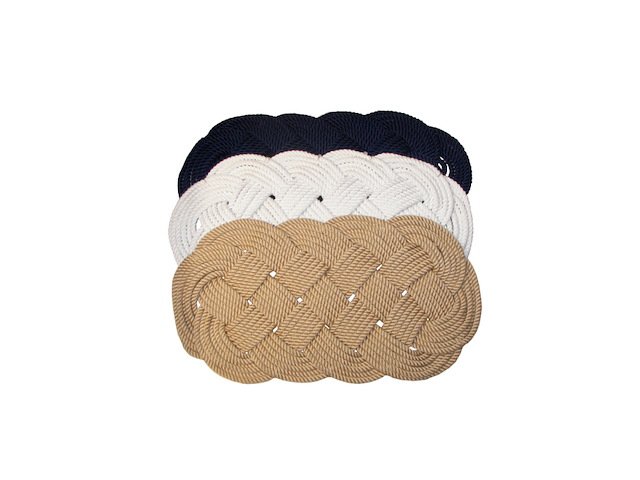 Tappeto ovale tradizionale intrecciato a mano in corda ritorta di fiocco poliestere in tinta unita. La qualità del materiale garantisce la tenuta del colore e la durata nel tempo. Dim. mm 470x250, Ø cima mm 8