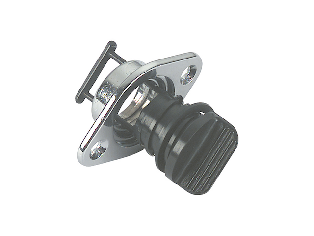 Ombrinale in ottone cromato con tappoin nylon e dispositivo di sicurezza cherende imperdibile il tappo, foro Ø 18 mm.,esterno Ø 23 mm, mm. 34x50.