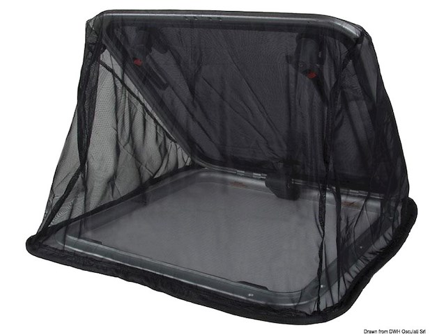 Telo anti-zanzare da montare all'esterno del passauomo.Fissaggio istantaneo tramite nastro appesantito alla base.