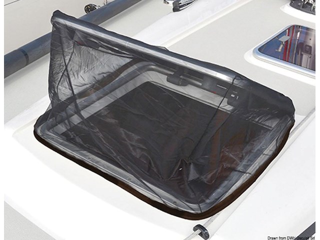 Telo anti-zanzare da montare all'esterno del passauomo.Fissaggio istantaneo tramite nastro appesantito alla base.