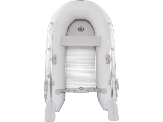 Battello Eurovinil dotato di pagliolato in alluminio scomponibile e chiglia gonfiabile. Dati tecnici : Lunghezza 420 cm. Larghezza 189 cm. Lunghezza int. 296 cm. Larghezza int. 90 cm. Diametro tubolari 50 cm. Camere aria 3 + 1 Peso 88 kg. Potenza max 30 Hp Portata 1087 kg. Persone 7