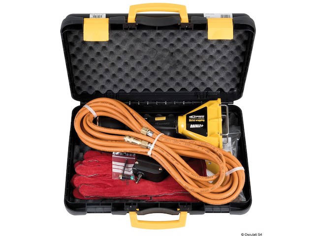 Termopistola a gas propano da utilizzare per la termoretrazione del polietilene. Con un peso di 1,170 kg, la sua ergonomicità e silenziosità (88 dB a 1 m - 85 dB), Rafale Black Edition è stata progettata per ridurre al minimo l'affaticamento dell'utente anche dopo molte ore di utilizzo. Ha un consumo aria da 48 a 72,2 m3/h ed un flusso da 3,2 a 4,8 kg/h. Il diametro dell'iniettore è di 1,3 mm e la testa può ruotare di 360° per l’utilizzo in ogni posizione. Il bruciatore in alluminio c