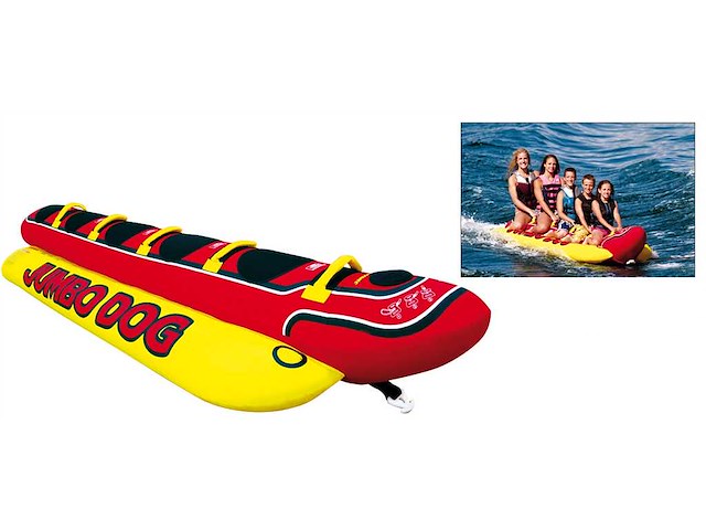 Maxi Hot Dog. Fabbricati in PVC elettrosaldato + nylon cordura + protezione in neoprene. Provvisti di speciale valvola per gonfiaggio/sgonfiaggio rapido. Dimesioni: 375 x 112 cm. . Portata: 5 persone.
