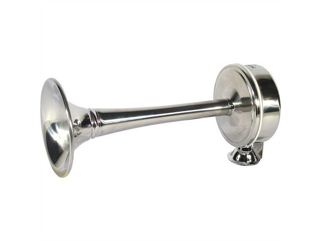 Tromba elettromagnetica interamente in acciaio inox. Potenza 114 dB - 350 Hz. Lunghezza 250 mm. . Alimentazione 12 volt. Assorbimento 5 Amp.