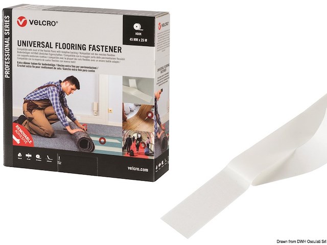 Uncino ultra sottile compatibile con la maggior parte dei pavimenti e rivestimenti flessibili ricettivi quali tessuti, moquette, tnt, pvc. Profilo basso, alta resistenza termica, non lascia residui. Adesivo per ambiente interno, facilmente removibile per non rovinare le superfici.