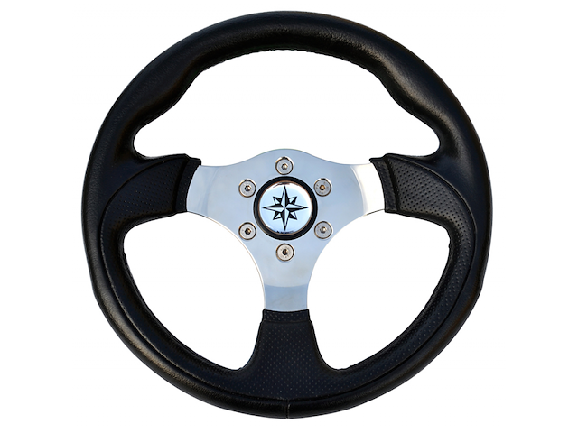 Volante a 3 razze con impugnatura e razze in acciaio inox rivestite in poliuretano morbido,cono universale